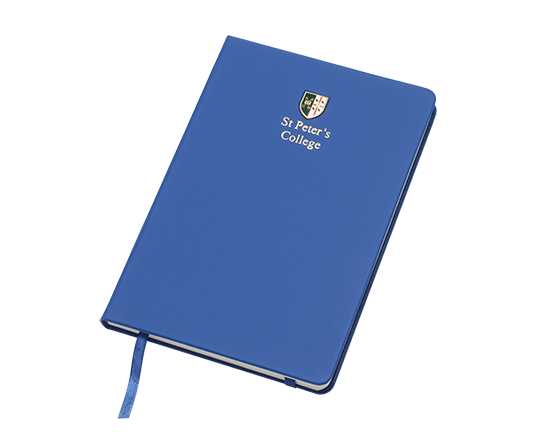 The College Collection Notebook is the perfect paper acquaintance to accompany any scholarly journey. This classic A5 lined notebook is personalised with the St Peter's College name in luxury gold foil and boasts a beautifully crafted metal and enamel crest inlayed into the deep blue PU cover.