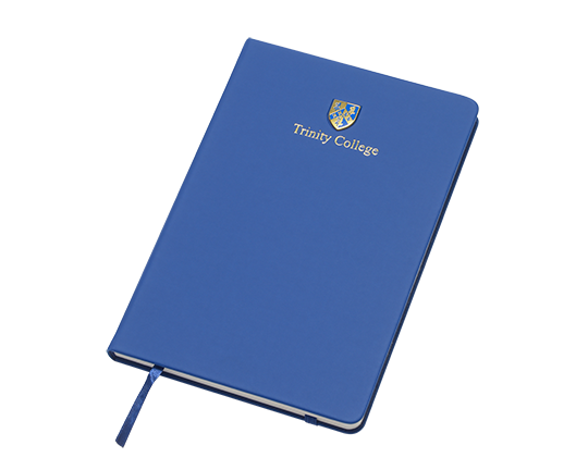 The College Collection Notebook is the perfect paper acquaintance to accompany any scholarly journey. This classic A5 lined notebook is personalised with the Trinity College name in luxury gold foil and boasts a beautifully crafted metal and enamel crest inlayed into the deep blue PU cover.