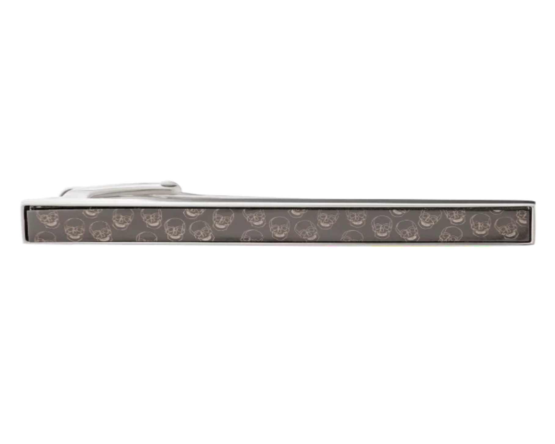 Give your tie a scarily good look with our Cheeky Skull tie clip. A cheery take on its more ghoulish counterparts, our cartoon version is light-hearted and fun, with randomly placed cheeky skulls being etched in silver onto the black carbon fibre background.