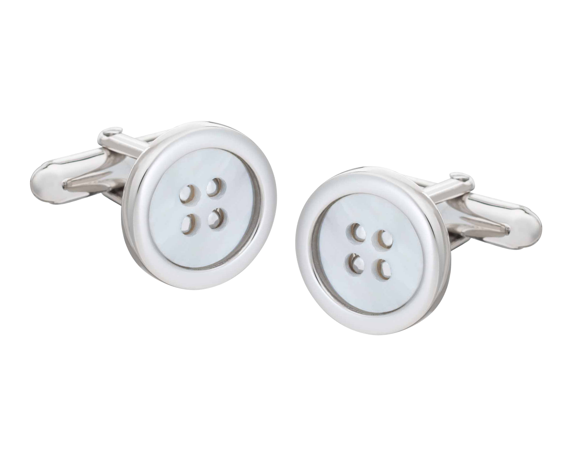 Adding a playful touch of luxury to your sleeve the classic button design has been rejuvenated in these iconic cufflinks through the combination of a casing and a polished mother of pearl insert.