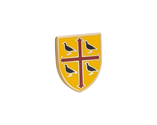 This authentic St Edmunds College lapel pin is part of the College Collection and is displayed on a branded card.